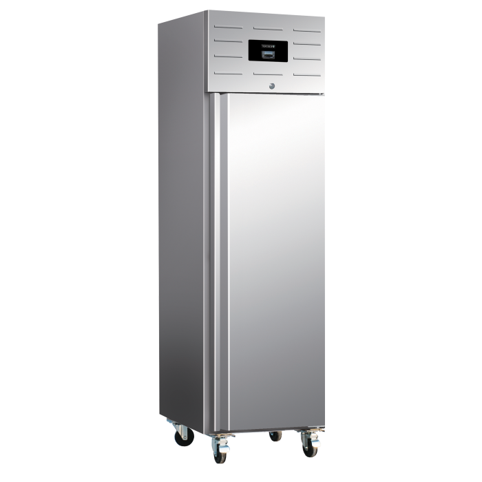 Úzká vertikální chladnička řady G je určena pro náročné kuchyňské prostředí. Je vybavena pevnými kolečky pro snadnou manipulaci a nerezovým pláštěm pro vysokou odolnost. Má nastavitelné police a je kompatibilní s gastronádobami GN1/1. Produkt s vynikajícím poměrem cena/výkon.