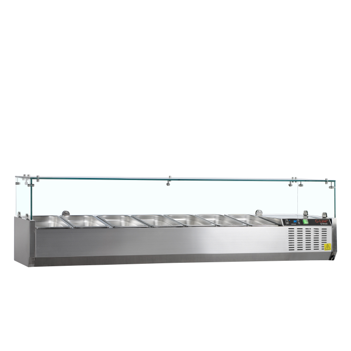 Chladicí nástavba na gastronádoby GN 1/4 vhodná pro pizzerie, rychlá občerstvení či menší provozovny. Gastronádoby nejsou součástí. GVC33-120: 5 x GN 1/4 GVC33-150: 7 x GN 1/4 GVC33-180: 9 x GN 1/4 GVC33-200: 10 x GN 1/4