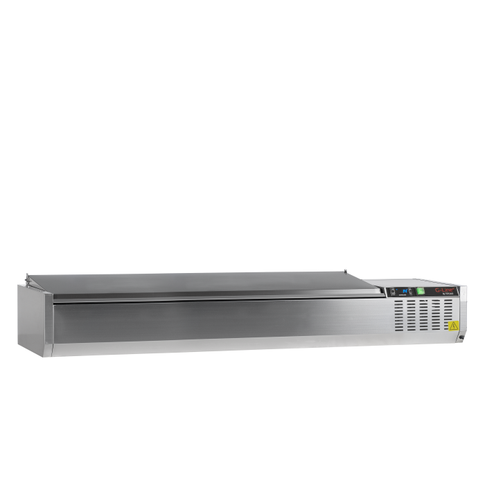 Řada chladicích nástaveb GVC33 S/S je skvělým doplňkem gastro pultů, protože vám umožňuje mít na dosah vše, co potřebujete k přípravě jídla. Je vhodná pro gastronádoby GN 1/4 x 150 mm (nejsou součástí) GVC33-120: 5 x GN 1/4 GVC33-150: 7 x GN 1/4 GVC33-180: 9 x GN 1/4 GVC33-200: 10 x GN 1/6