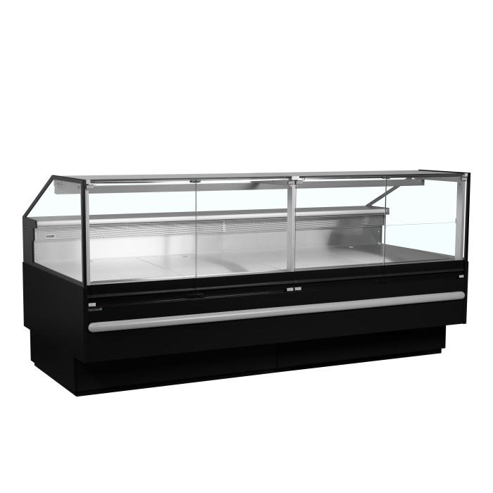Řada obslužných pultů SOCB je ideální volbou pro lahůdkářství, která chtějí stylově vystavovat maso a mléčné výrobky. Tyto jednotky mají 825 mm hlubokou výstavní plochu z nerezové oceli, LED osvětlení, snadný přístup zezadu a přední sklo, které se otevírá dopředu pro snadné čištění. Vejdou se do nich boxy na zeleninu E2, lze je spojovat do sestav a nabízejí přizpůsobitelné možnosti, jako jsou další police, bloky na nože a další.