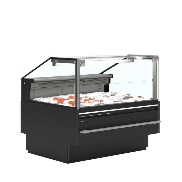 Tento vysoce kvalitní obslužný pult vnese styl a funkčnost do každého obchodu s čerstvými rybami. Vyznačuje se elegantním designem, sklem proti zamlžování a osvětlením LED v horní části. Stane se atraktivním středem pozornosti každé prodejny, ale hezkým vzhledem to nekončí. Nerezová vana o hloubce 50 mm je navržena speciálně pro bezpečné skladování čerstvých ryb na ledu. Upozorňujeme, že kondenzát vzniklý při odtávání, musí být vzhledem k jeho objemu, odváděn přímo do kanalizace.