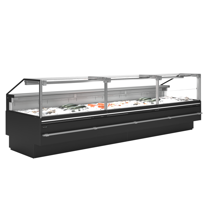 Tento vysoce kvalitní obslužný pult vnese styl a funkčnost do každého obchodu s čerstvými rybami. Vyznačuje se elegantním designem, sklem proti zamlžování a osvětlením LED v horní části. Stane se atraktivním středem pozornosti každé prodejny, ale hezkým vzhledem to nekončí. Nerezová vana o hloubce 50 mm je navržena speciálně pro bezpečné skladování čerstvých ryb na ledu. Upozorňujeme, že kondenzát vzniklý při odtávání, musí být vzhledem k jeho objemu, odváděn přímo do kanalizace.